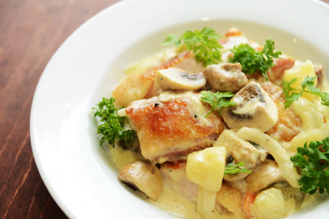 鶏とマッシュルームポテトクリーム煮込み