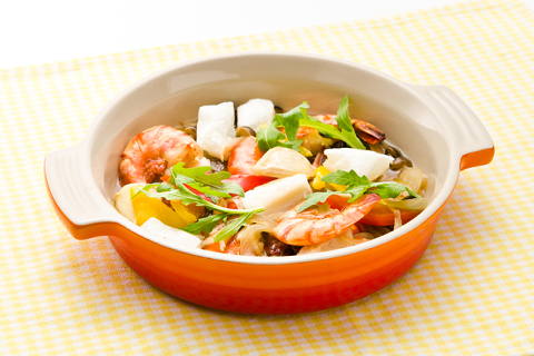 マッシュルームとエビのオイル煮